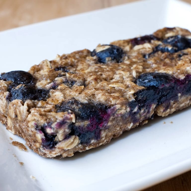 Pin it These bars came about on a Tuesday morning when I was tired of the same old granola and needed something that felt less like breakfast and more like a treat I could eat with my coffee. My roommate had left a bunch of overly ripe bananas on the counter, the kind that are practically begging to be used for something, and I had just bought a protein powder I wasn't sure about. Instead of wasting either, I threw them together with some oats and blueberries, baked them, and suddenly had these chewy, golden bars that tasted nothing like a health food—even though they absolutely were one.