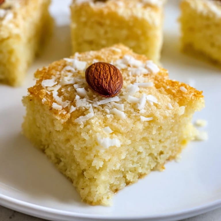 I remember making this late one Friday night after a long week, craving something sweet but not wanting to fuss with layers or frosting. The batter spread thick and golden in the pan, and I scored it with a butter knife before pressing an almond into each square. My daughter wandered in, drawn by the smell of toasted coconut and butter, and we ate two pieces each straight from the pan, still warm, syrup dripping onto our fingers. It became our unspoken weekend ritual after that.