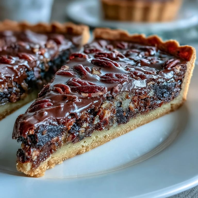 Pin it My aunt brought this tart to a Derby Day gathering years ago, and the kitchen filled with this impossible smell—butter, chocolate, and something sophisticated I couldn't quite name until she mentioned the bourbon. I watched her pull it from the oven, golden and slightly jiggly in the center, and that's when I understood why this Southern classic has survived generations. It's not just dessert; it's a moment that tastes like celebration.