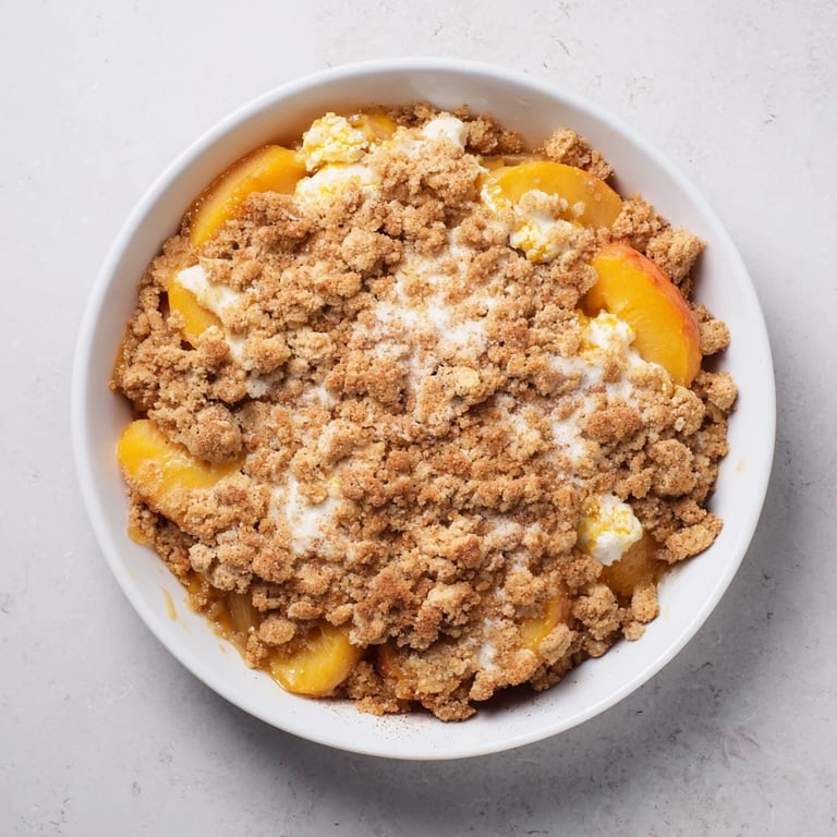 Pin it A warm, comforting dessert featuring juicy peaches and a hint of ginger, topped with a soft, buttery crumble. Perfect for cozy gatherings or a summer treat.