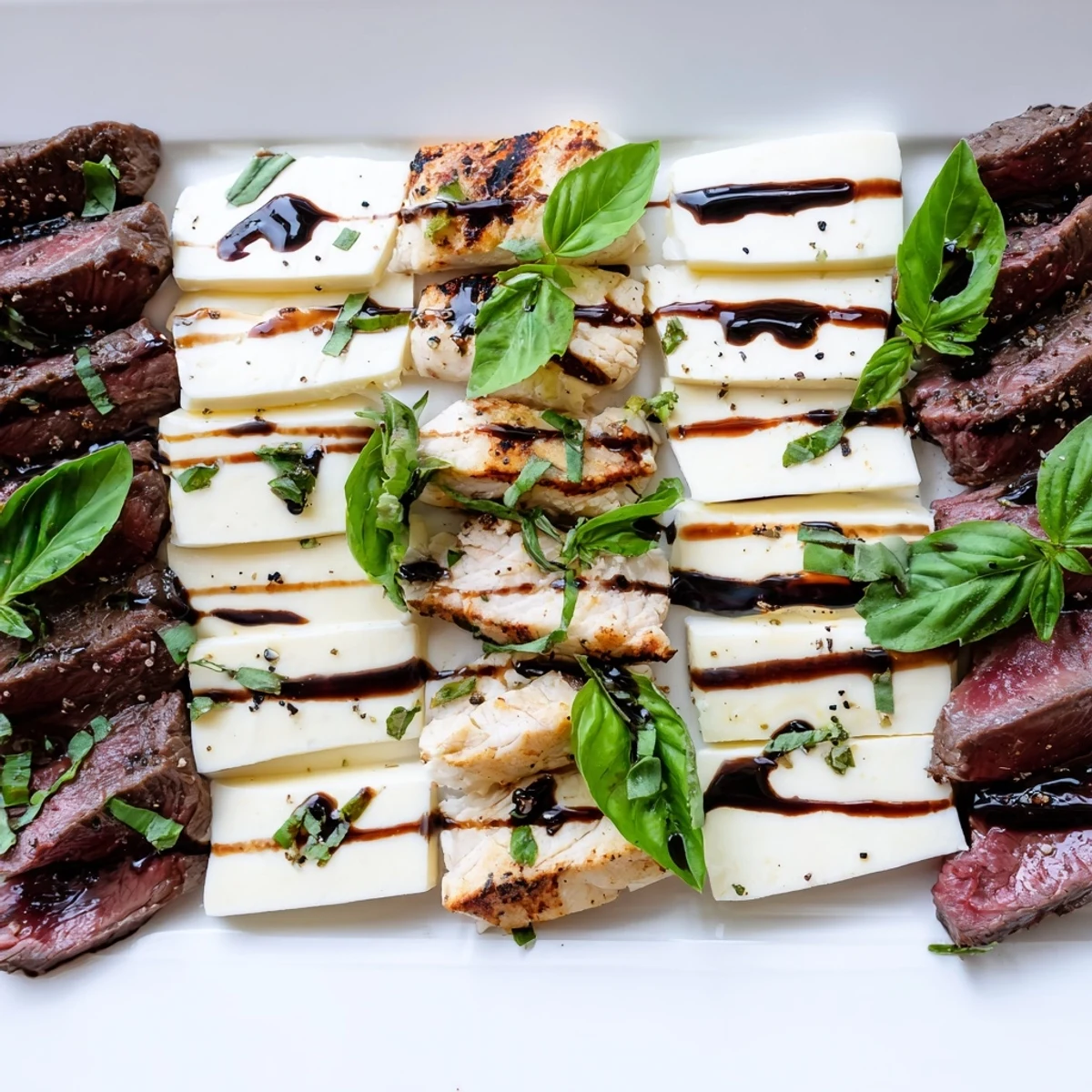 Pin it I discovered this striped beauty at a summer dinner party where someone casually arranged cheese and meat on a platter, drizzled it with something glossy, and suddenly everyone stopped talking just to admire it. The way the white mozzarella caught the light against those dark meat strips felt almost intentional, like edible art that tasted even better than it looked. What struck me most wasn't the complexity, but how something so simple could feel elegant without trying too hard. I've been making it ever since, usually when I want people to think I spent all afternoon cooking when really it took less time than setting the table.