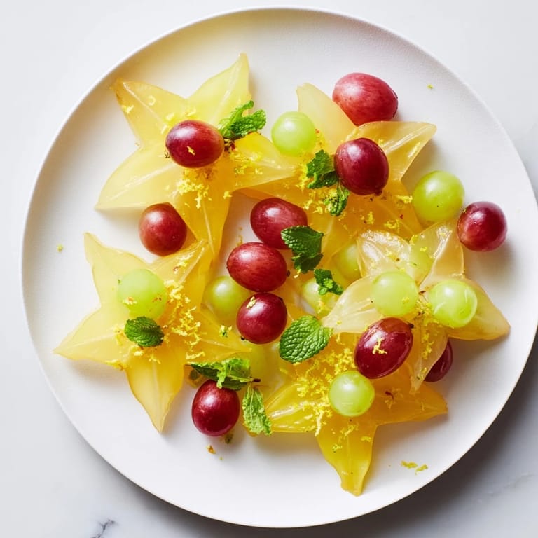 Pin it A vibrant, refreshing plate of sliced starfruit and grapes, perfect as a brunch garnish or a light, healthy snack.